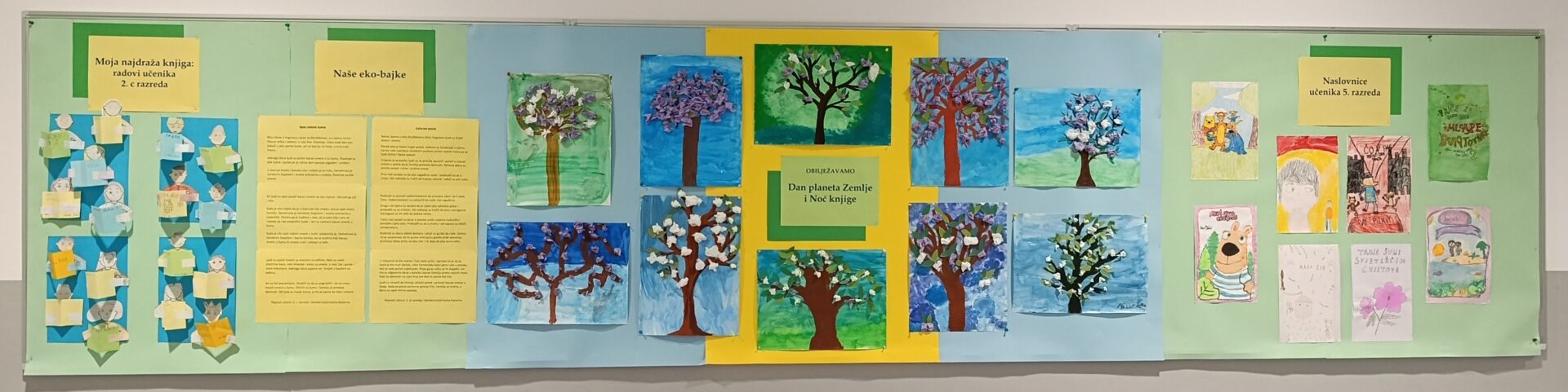 Na radionici „Moja najdraža priča“ učenici 2. c razreda razgovarali su o pričama koje vole slušati i čitati te su svima preporučili zanimljive naslove. Učenici 3. c i d razreda s knjižničarkom su napisali dvije maštovite eko-bajke smještene u naš zavičaj, u kojima su istaknuli važnost očuvanja prirode. Pod vodstvom učiteljice Verice Jadanec, učenici 5. razreda oblikovali su naslovnice svojih omiljenih knjiga te izradili likovne radove koji prikazuju ljepotu prirode u ovo proljetno doba.